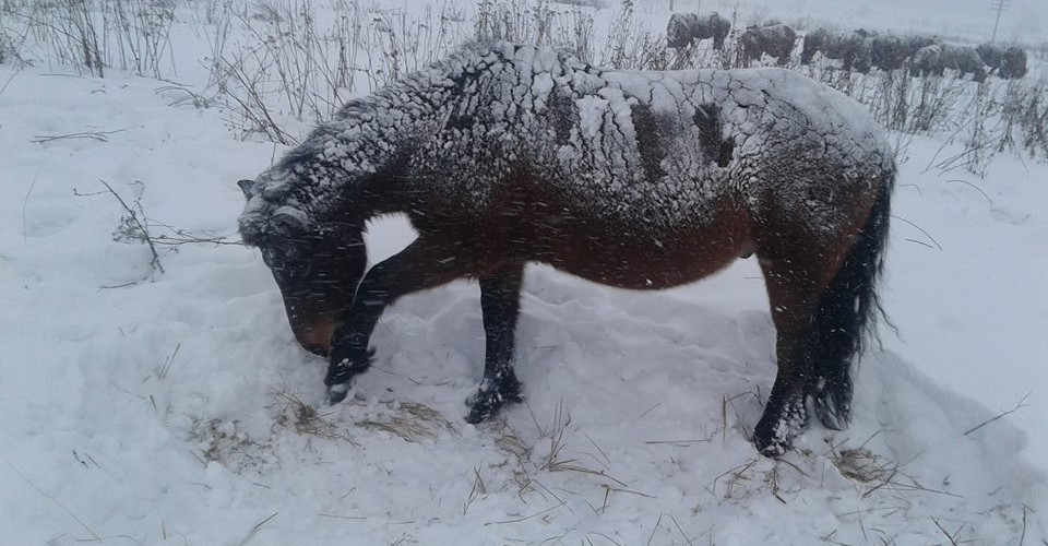 Останні 6-7 років не було важких зим. Коні не бояться дощів, вітрів, морозів. Важка зима - це коли випадає понад 60-70 см снігу і якщо йде відлига, а потім знову морози тоді, таку товщу злежаного снігу коням важко пробивати. Цієї зими синоптики обіцяли "справжню" зиму і вона до нас прийшла під Новий рік (почалися сильні вітри і снігопади). Ще перші числа січня коні "відпочивали", спокійно докопувалися до їжі, хоч вже випав досить глибокий сніг і дув сильний крижаний вітер.